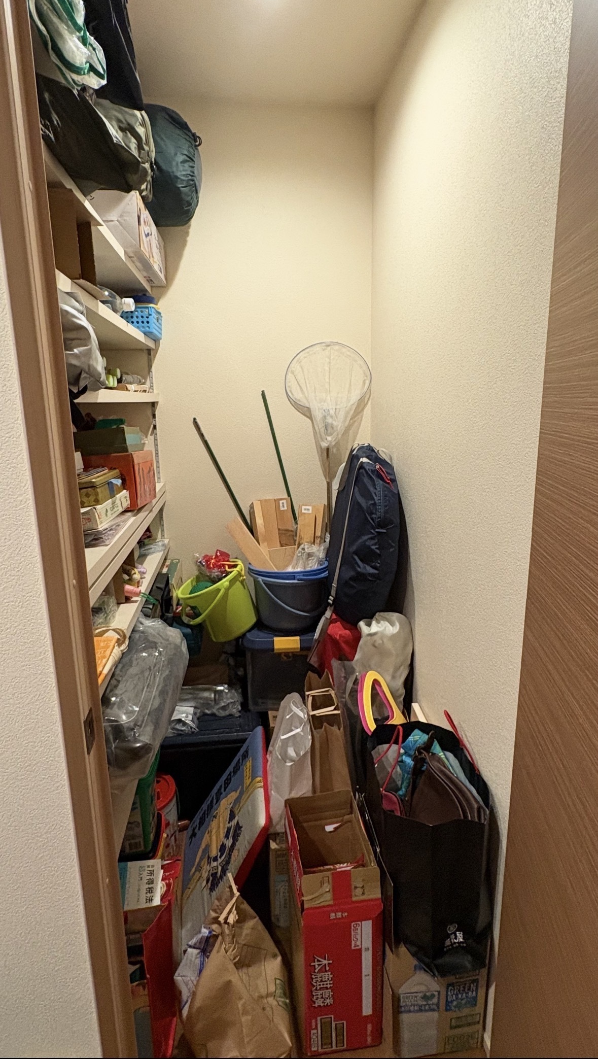 よく使う物は手前に、使用頻度の低い物は奥へ配置することで、何がどこにあるか分かりやすく、取り出しやすい納戸に整いました。