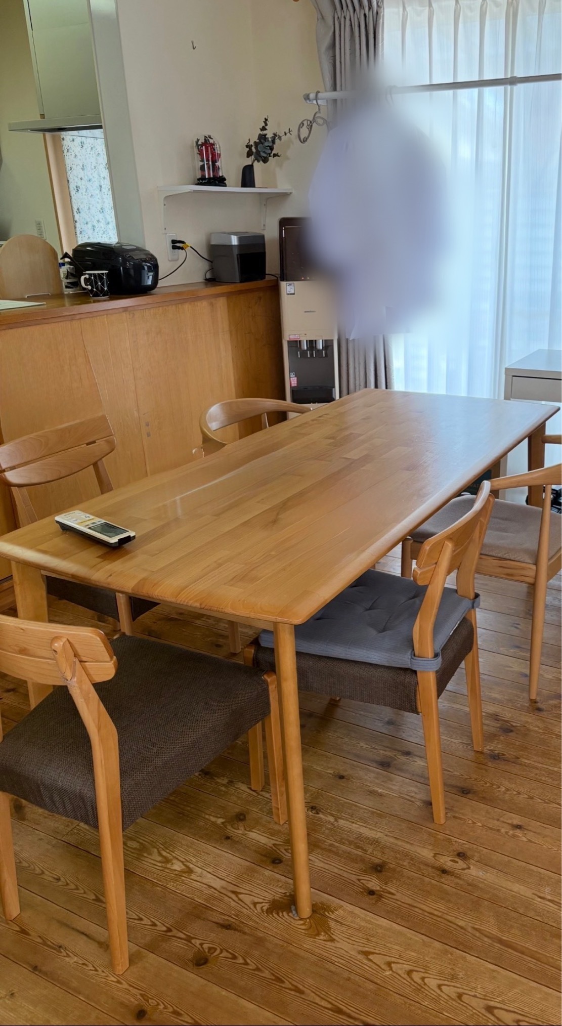 ダイニング全体は木製家具で統一され、まとまりはあるものの、空間にアクセントとなる要素や視線のポイントが少なく、全体的にフラットな印象になっていました。