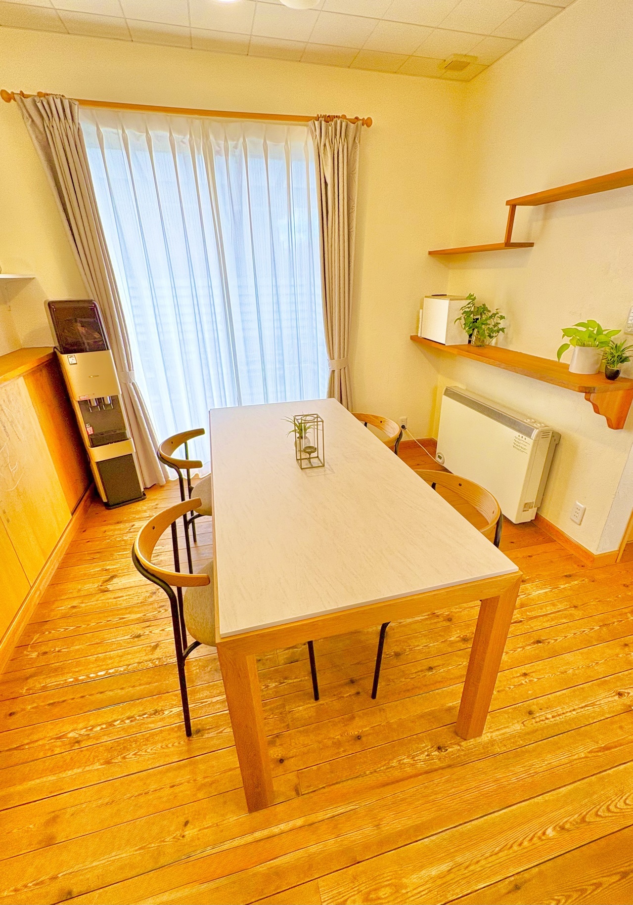 カーテンはカインズの規格サイズですが、あえて幅を多目に取り、ドレープを作ることで、やわらかなシルエットを出しています。